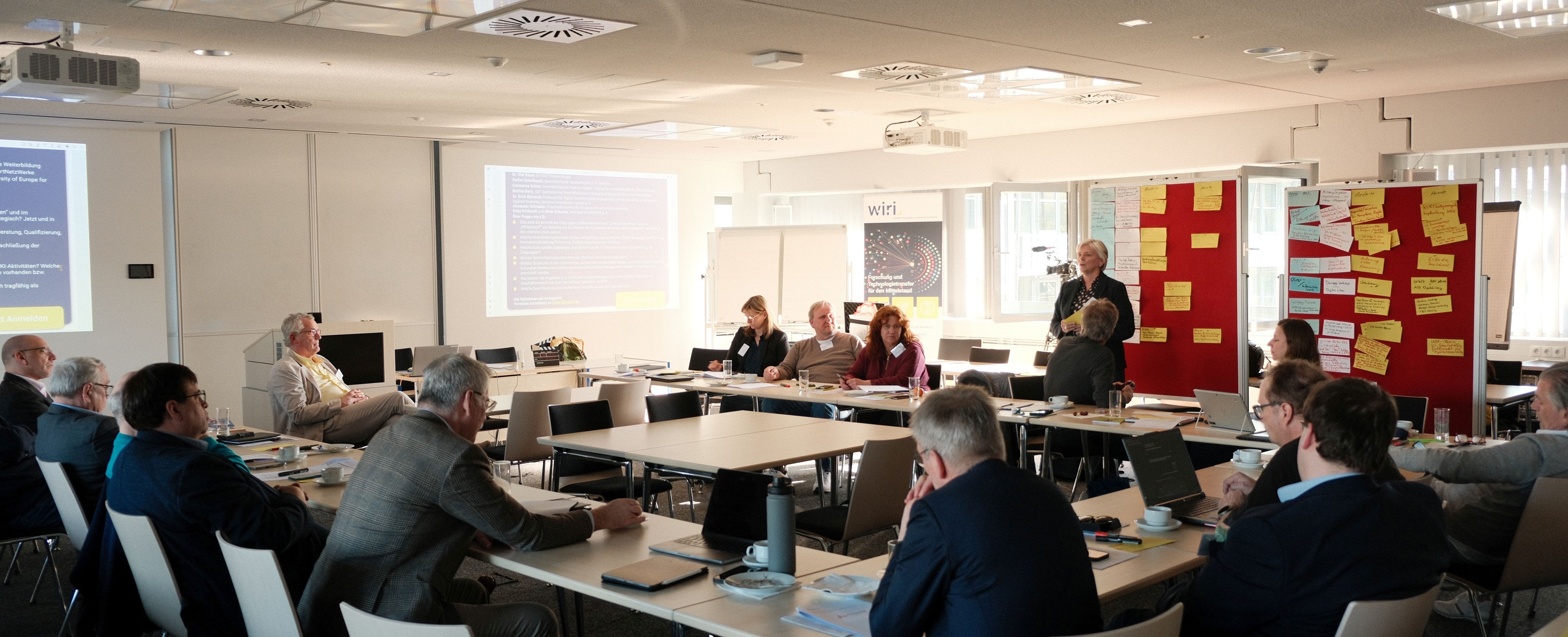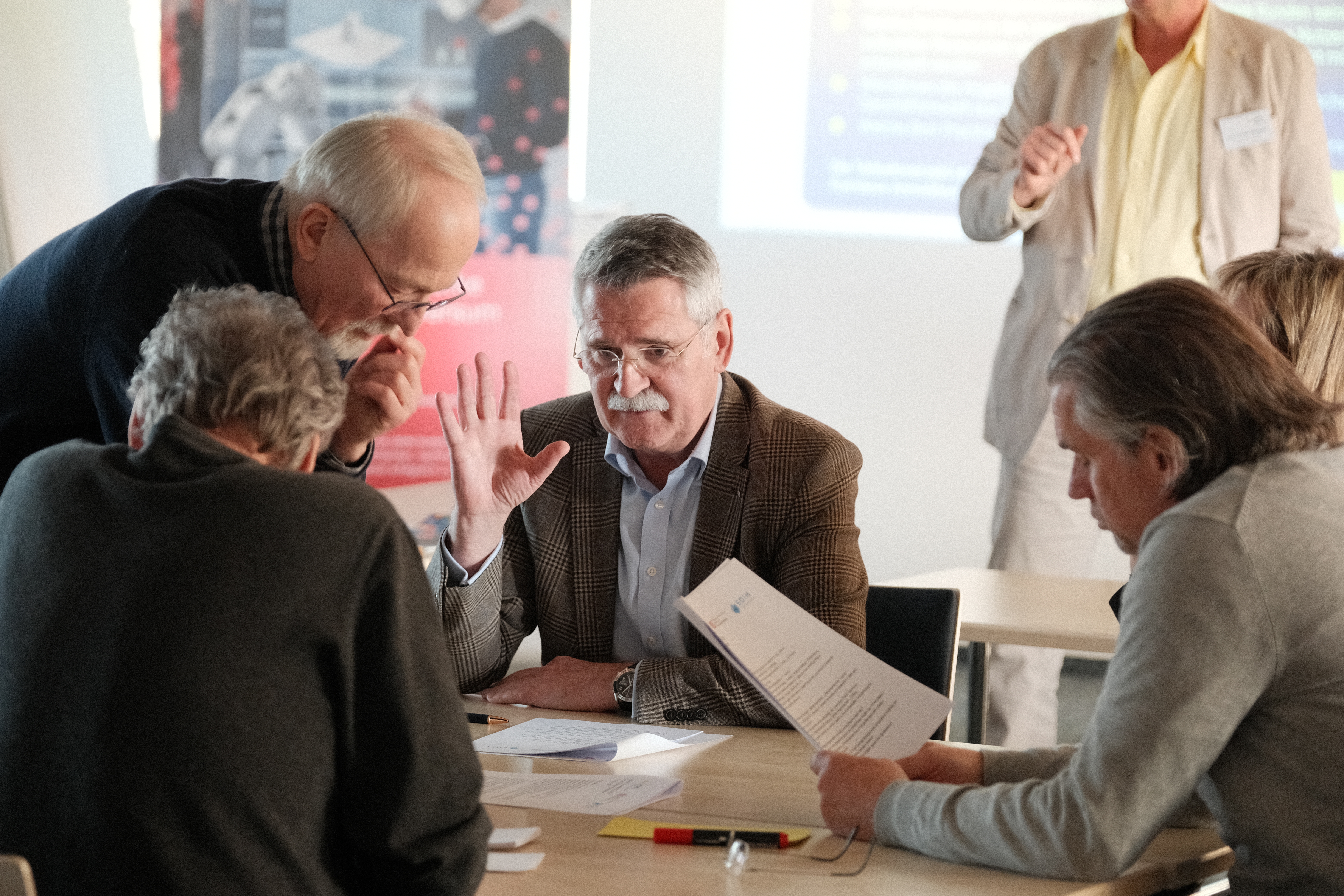 Im Rahmen des ersten Verstetigungsworkshops kamen erfahrene Praktiker, Netzwerker und Entscheider aus Unternehmen und Institutionen zusammen. Mit dabei waren unter anderem Dominic Florian Rose (hp polytechnik GmbH & Co. KG), Achim Gilfert (Personaler Netz e. V.), Ingrid Lange (Netzwerk Industrie RuhrOst e. V.), Dr. Olaf Röper (ehemals CDO-ThyssenKrupp), Stefan Szkudlapski (netzwerkdraht e. V.), Janna Prager (CSCP in Wuppertal), Bettina Bartz (GS1 Germany / Mittelstand-Digital Zentrum WertNetzWerke), Prof. Dr. Erich Behrendt (University of Europe for Applied Sciences / wisnet e. V.), Alexander Schneider (Fraunhofer FIT) sowie Katja Kohlstedt und Oliver Schuster (visibleRuhr e. V.) .